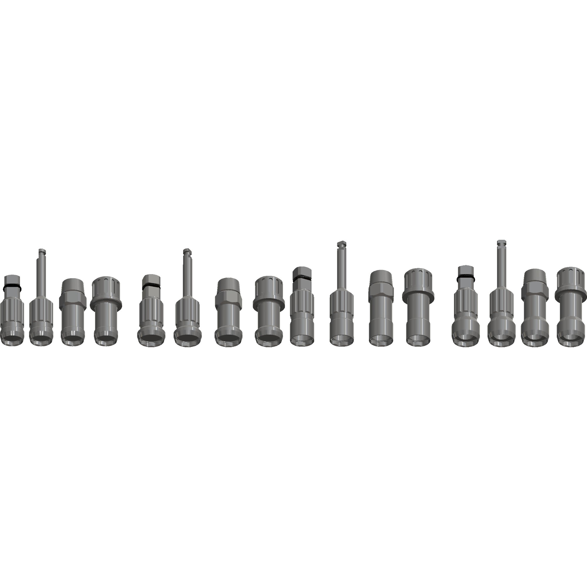 Da jede der vier Titanmagnetics® Produktlinien einen eigenen Durchmesser besitzt, war bislang für jede Linie ein separater Ratscheneinsatz erforderlich. Zusätzlich sind die Titanmagnetics® Ratscheneinsätze für verschiedene marktübliche Drehmomentratschen erhältlich, beispielsweise für Systeme von Camlog oder Bredent.